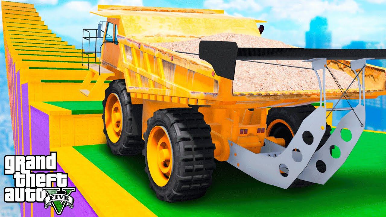 КАК ДАЛЕКО ОГРОМНЫЙ БЕЛАЗ СМОЖЕТ ЗАБРАТЬСЯ ПО СТУПЕНЬКАМ ЛЕСТНИЦЫ в ГТА 5 МОДЫ ЭКСПЕРИМЕНТЫ в GTA 5