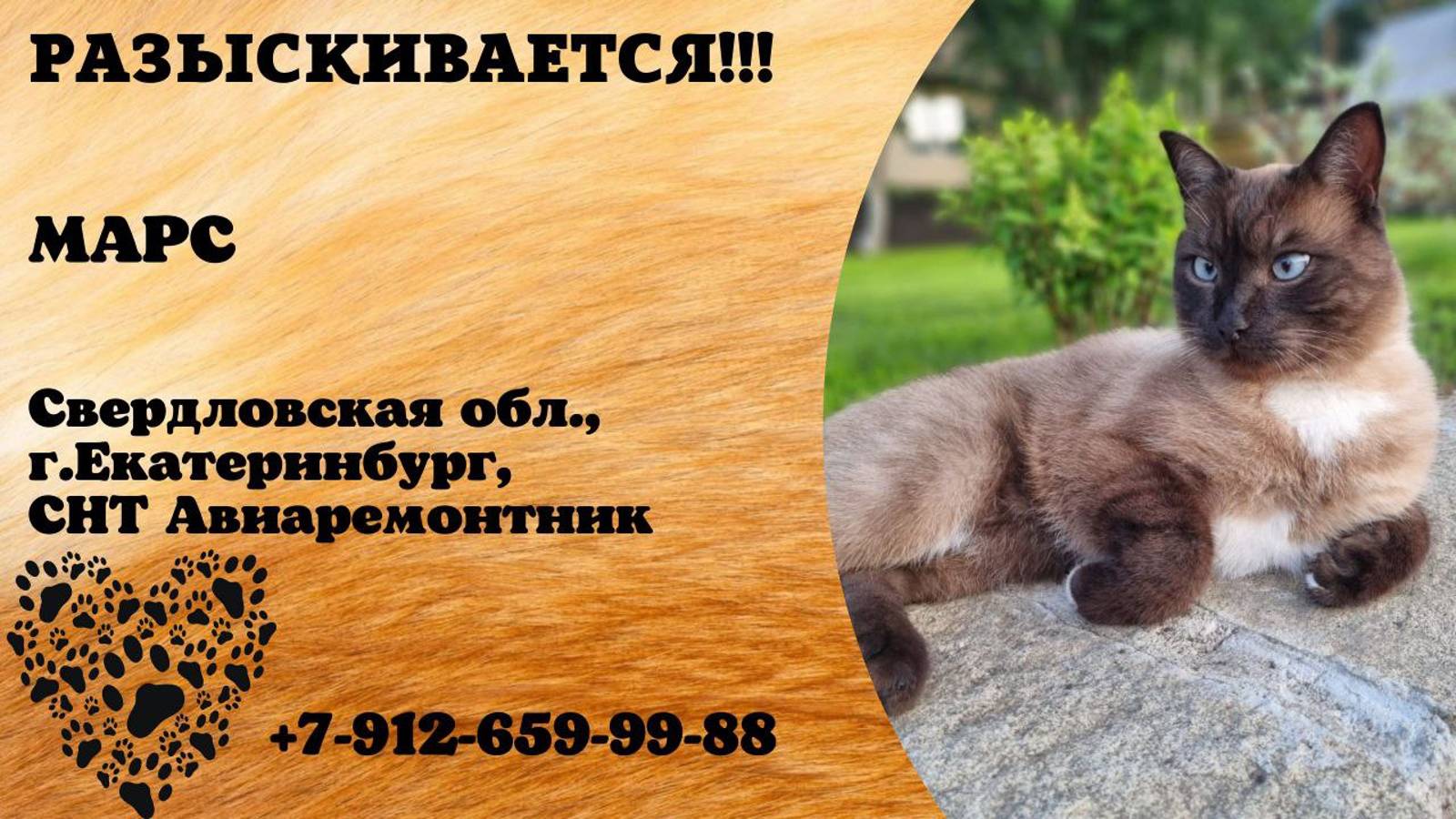 Пропал кот! МАРС. Свердловская обл, г.Екатеринбург