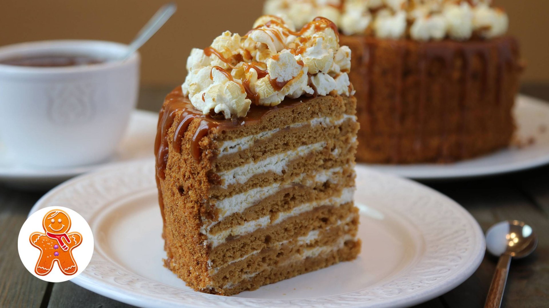 Авторский рецепт Для коржей на форму 20 см: 160-200 г муки 380 г вареного сгущенного молока 2 средних яйца 100 г сливочного масла 10 г разрыхлителя для теста Для крема: 400 мл сливок 35% 40 г сахарной пудры (или по вкусу) 150-200 г карамельного соуса Вес торта - 1,1 кг