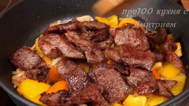 Привет друзья!Добро пожаловать на наш канал! Рецепт приготовления и ингредиенты: 600-700 г говядины. Нарезаем средними кусочками. Поместите мясо в миску. Добавьте 1 чайную ложку пищевой соды. Хорошо перемешать. Пищевая сода действует как размягчитель мяса, изменяя физический состав мясных волокон. Накройте крышкой и оставьте мариноваться на 15 минут. Через 15 минут. Хорошо промойте мясо водой. Обсушите бумажным полотенцем. 2-3 столовые ложки оливкового масла. Выложите мясо на сковороду и обжарьте на сильном огне по 2 минуты с обеих сторон. Обжарьте вторую порцию мяса. Выложите мясо на тарелку. 1 луковица. 20 г сливочного масла. Обжаривайте на среднем огне 3-4 минуты. 1/2 желтого перца и 1/2 оранжевого перца. Нарезаем средними кусочками. Хорошо перемешать. Добавьте мясо. Натрите на мелкой терке 2 зубчика чеснока. 1 чайная ложка соли. 1 чайная ложка сахара. Черный перец. 1/4 чайной ложки хлопьев чили. 1 столовая ложка бальзамического уксуса. 2 столовые ложки растительного масла. 1 столовая ложка сладкого кетчупа. Заливаем приготовленным соусом. Хорошо перемешать. Хорошо перемешайте и тушите на медленном огне 8-10 минут. Нарежьте 1 свежий огурец. 70-80 г вареной курицы. Нарезаем 5-6 чернослива. Небольшой пучок петрушки. Солить по вкусу. Черный перец. 2 столовые ложки майонеза. Хорошо перемешать. Приятного аппетита! Друзья, если вам понравился рецепт,дайте знать в комментариях, подписывайтесь и ставьте лайк ?.Готовим для Вас с любовью! ???.