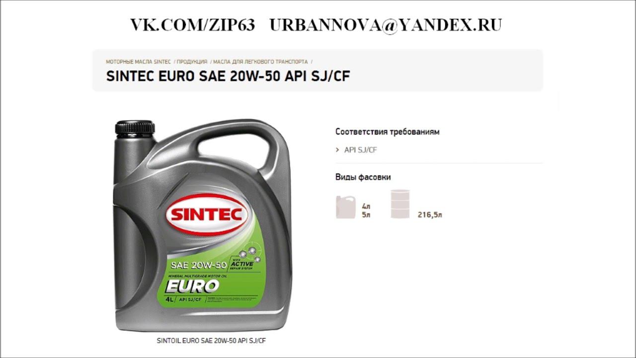 Масло моторное SINTEC EURO SAE 20W 50 API SJCF