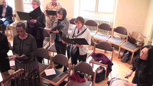 Evangelical Lutheran Church of Geneva Choir of the English-speaking congregation, Banjo, percussion, guitar. 'The Lamb has overcome' words & music by Luke Morton
