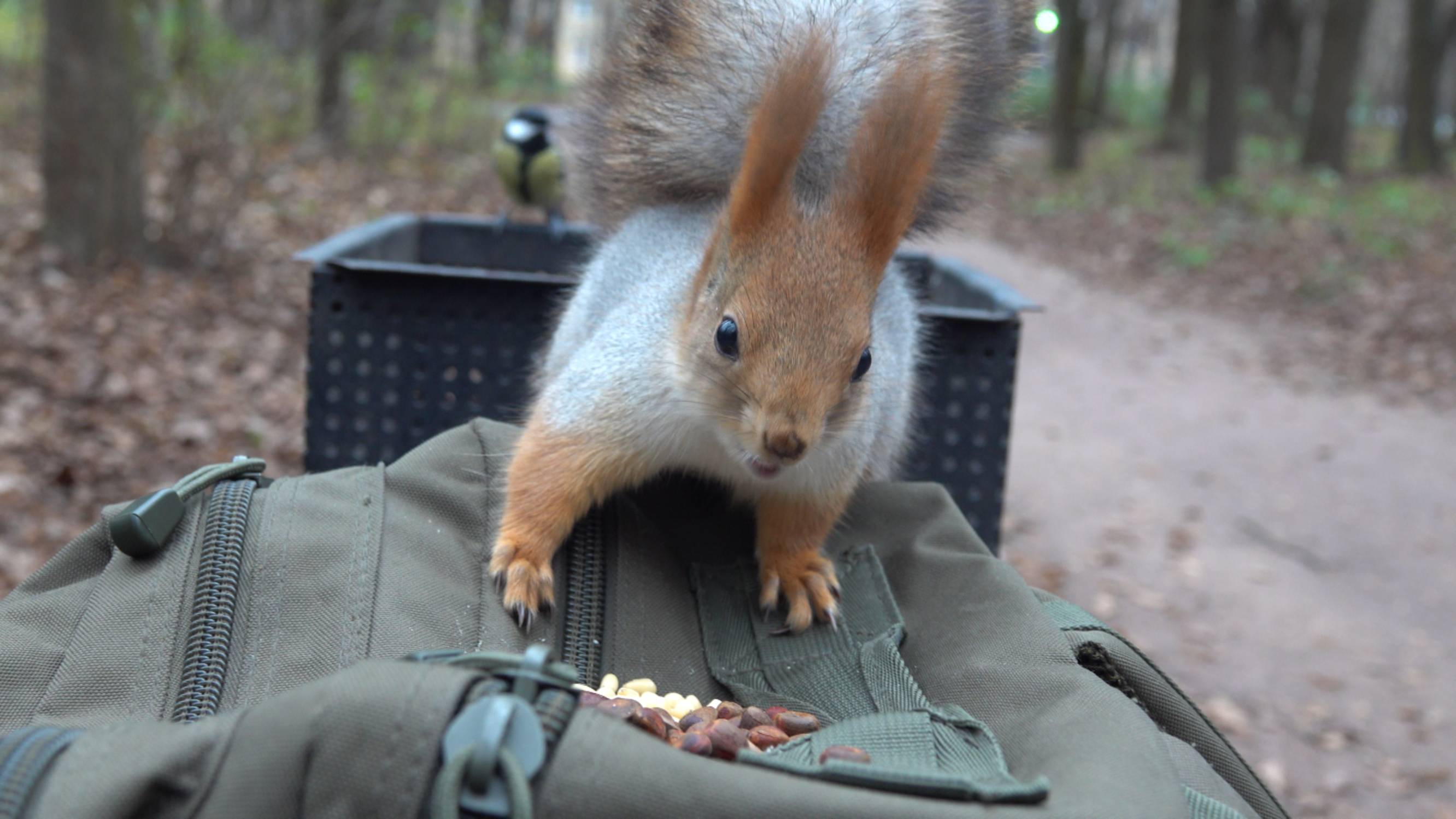 Белки. Бельчонок вскрыл грецкий орех. Зарисовка
