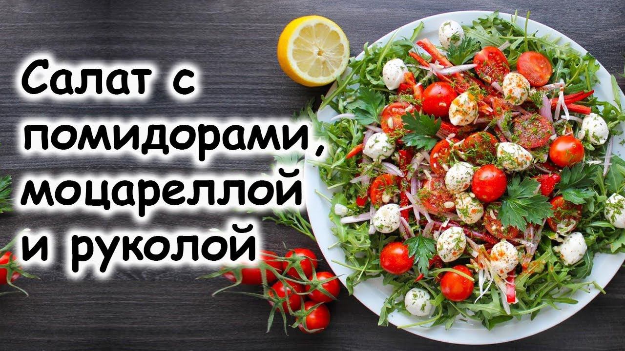 Салат с рукколой помидором черри и моцареллой