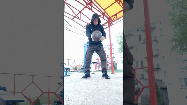 утро, дождь тренировка с гирей под крышей разминочные движения по окончании миникомплекс 1.ДЦ - 5 пр/лев 2.мах - 10 3. приседания - 7 2 круга