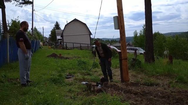 Тянем электричество на даче 2. Электрик на столбе. Наша дача.