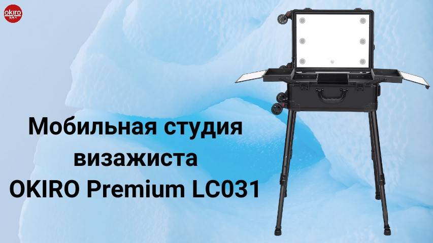 Мобильная студия OKIRO LC 031 на телескопических ножках для визажиста просто не заменима для мастеров на выезде к клиенту и на мастер классы. Мобильная студия визажиста со складывающимися ножками и съемными колесами. Стол - Чемодан на четырех колесах и с лампами. Полностью готовое рабочее место для профессионального макияжа в любых условиях. Комплектация студии обеспечит комфортную работу мастера (визажиста, стилиста, парикмахера, аква грим мастера) в любых условиях. Все четыре колеса съемные, отстегиваются в одно движение. Складные ножки данной модели съемные, что обеспечивает особенно легкую установку. Внешний размер кейса-студии 46 х 35 х 25 см. Данная модель имеет большое зеркало и мощную диодную подсветку из 6-ти LED ламп, что позволяет качество осветить модель даже при дневном свете. Подсветка имеет холодный белый и теплый свет, а так же регулировку яркости. Размер зеркала: 41 х 30.5 см. Сенсорная кнопка управления светом расположена внизу зеркального полотна. Включение/выключение - одно нажатие, регулировка яркости - долгое нажатие. Тип подсветки: диоды LED. Цветовая температура: 3200-5600 К. Мощность диода: 3 Ватта. В центре нижней части расположен бокс с откидными стеклянными дверцами на защелке. Крепится бокс на прочные многоразовые липучки. Общий размер бокса: 28 х 22 х 11,5 см. Одно нижнее отделение: 28 х 22 х 3,5 см. и две полочки, расположенные в 2 уровнях, обеспечат комфорт мастеру в работе. Размер выдвижной полки 21,5 х 13 х 2,5 см. 4 телескопические ножки обеспечат устойчивость и могут быть убраны. Высота ножек регулируется. Возможно 4 варианта установки студии: 70 см, 76 см, 80 см, 83 см (указана высота от пола до нижней части студии). Съемные прорезиненые колеса (диаметр колес 6 см.) черного цвета с оборотом в 360 градусов сохранят удобство при перемещении. На профессиональной мобильной студии визажиста имеется два боковых замка, в комплекте 2 ключа. На корпусе студии с двух сторон расположены две ручки для переноски, и одна выдвижная ручка для перемещения студии по поверхности. Ручка выдвигается на 57см. Алюминий и МДФ самого высокого качества дадут возможность использовать студию долгое время, что немаловажно для профессионалов. В студии имеется возможностью зарядки гаджетов через USB и многофункциональную розетку. USB. Bluetooth колонки. Разъемы расположены с внешней стороны кейса. В комплект входит: Студия, ножки-4 шт. сетевой шнур, USB шнур, стаканчики для кистей (10 х 6 х 9 см) - 2шт. колеса -4 шт. ВЕС студии: 10 кг