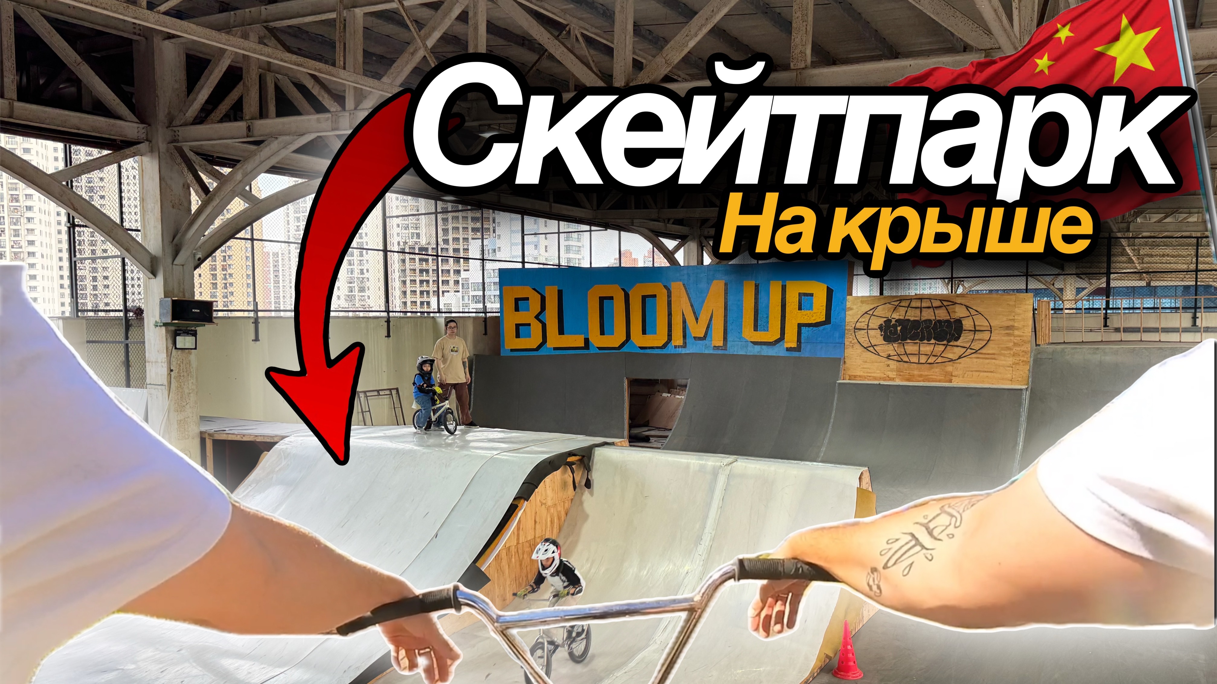 Скейтпарк на крыше здания в Китае! | БМХ трюки от первого лица