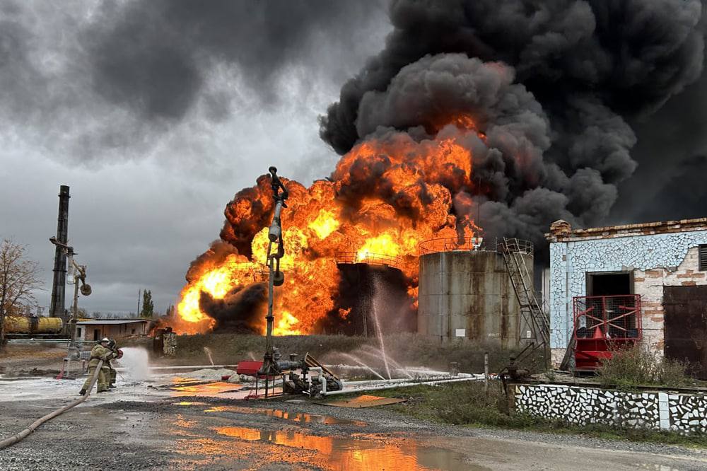 В Шахтёрске после обстрела ВСУ на территории Ж/Д станции горят четыре емкости с бензином по 60 тонн