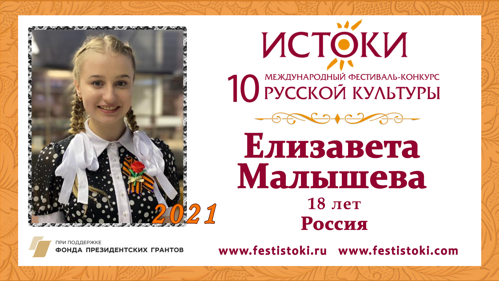 Участница Юбилейного X Международного фестиваля-конкурса русской культуры "Истоки". Сайт: www.festistoki.ru / www.festistoki.com E-mail: festistoki@mail.ru