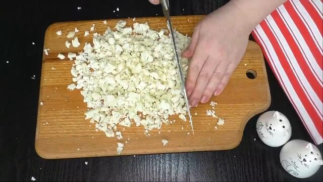 РЕЦЕПТ: лук - 50 г яйца - 2 шт. соль - 1 ч.л. перец - 2 г куриное филе - 300 г цветная капуста - 200 г мука - 3 ст.л.