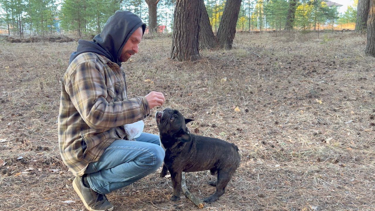 Французский бульдог Олег учится новому