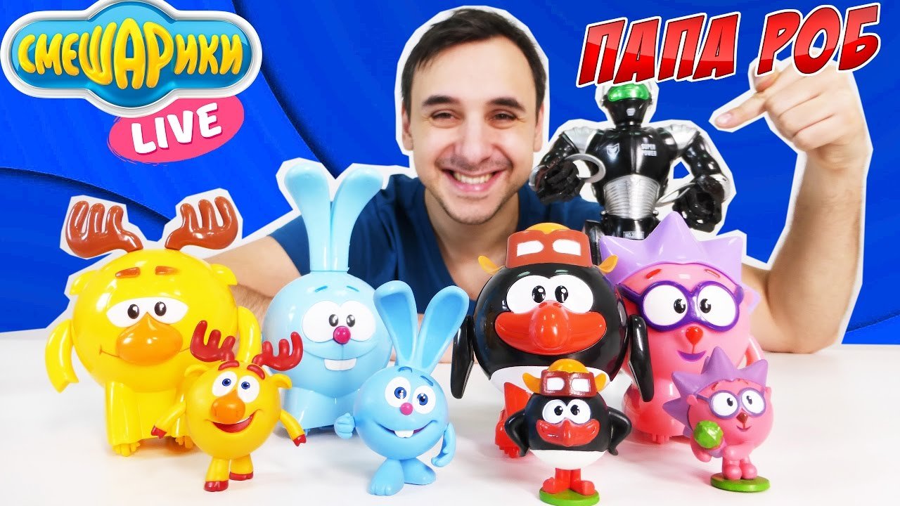 А существуют ли РОБОТЫ СМЕШАРИКИ, которыми можно управлять? Да, существуют! Особенно, если за дело берется ПИН! Сегодня на канале Смешарики Live Папа РОБ (Папа Роб Шоу) устраивает настоящую битву с РобоСмешариками! У каждого есть свой робот - ПИН, КРОШ, Лосяш и Ежик! Даже у Папы Роба есть РобоРОБОТ! Смотри скорее наше новое рождественское видео на канале Смешарики Live и ты увидишь, как закончилась битва! Смотреть все видео Смешарики Live: https://www.youtube.com/channel/UCy15c4beE539pcPFt4-UrHg Лучшие видео со Смешариками: https://www.youtube.com/watch?v=VgcCaFR9ABU&list=PLm_VvCP2z8lzbukJ5CHO2FXC3oUPcBkSZ Еще больше видео для детей про игрушки на нашем канале СПАСАТЕЛИ ИГРУШЕК: https://www.youtube.com/channel/UC9-eWn5roqlMDYVVWgt7XQA Чтобы не пропустить другие приключения, подписывайся на наш канал Папа Роб Шоу: https://www.youtube.com/channel/UC5scTgc8DqV9Xq-xNvgTMPw Чтобы не пропустить другие приключения, подписывайся на наш канал ИГРОМУЛЬТИК: https://www.youtube.com/channel/UC9RFqPpLn4BOZOn7J7kUThATV Смотрите нас на Фейсбуке! https://www.facebook.com/4ScreensShow Присоединяйтесь к нам ВКонтакте! https://vk.com/club132423271 Следите за нами в Твиттере! https://twitter.com/4Screens_Studio Посети наш Instagram! https://www.instagram.com/4screensstudio/