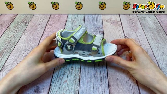 347364 Сандалии Pasito открытые на липучках с цветными текстурными вставками серые