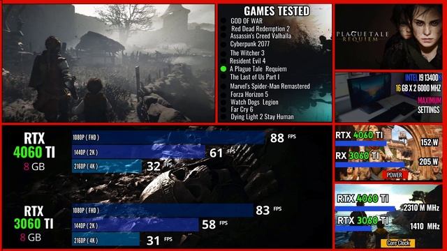 Rtx 3060 Ti vs RTX 4060 Ti test in 13 Games
