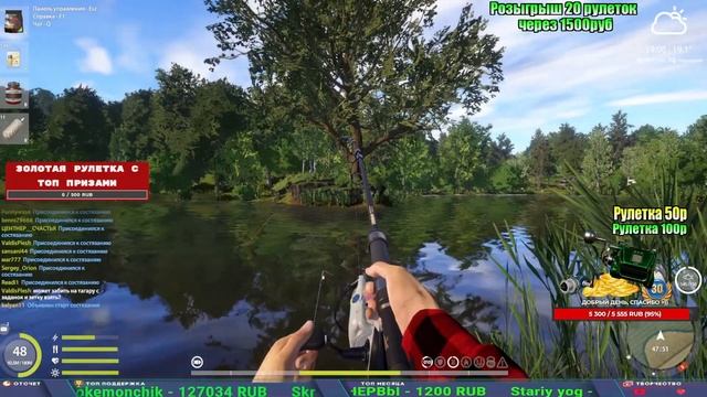 Поддержка донатом https://new.donatepay.ru/@1032463 Альтернативный донат https://www.donationalerts.com/r/kalyamba11 5536913964533059 карта Тинькоф Если стрим лагает,смотри стрим на трово https://trovo.live/s/Kalyamba_na_Ribalke Мой ВК - https://vk.com/kalyantv НИК в игре kalyan11 НАШ ДИСКОРД СЕРВЕР https://discord.gg/3ZeEDGs5h6 Заказ водоема на 1 час - 500р ( весь стрим 2500р ) Модерка на канале 1300р ( каждая следующая на 100р больше) ✅Призы в рулетке "ЗОЛОТАЯ" 500р ✔ ЗОЛОТО ✔ ПРЕМ ✔ КАТУШКИ РАПТОР 40, ВЕНГИ, ТАЙГА, СИЛЬВЕР 80, И другие ✔ ПАЛКИ ПИЛКЕРНАЯ, ДОНКА МОРСКИЕ, ✔ РОД ПОД, СТУЛЬЯ ✅Призы в рулетке СТАНДАРТ : 100р ✔ катушкИ РАПТОР 40, ВЕНГИ, ТАЙГА, СИЛЬВЕР 80, И другие ✔ катушки 60 для медного ( ЭВИИ, НАТОРЫ, ГОЛДА, и тд) ✔ ПИЛКЕРНОЕ УДИЛИЩЕ КОРОЛЕВА ОКЕАНА ✔ Морское Донное удилище ✔ прем ( 3, 7, 30 дней) ✔ золото ( 1, 3, 5, 10, 20 ,50) ✔ билет на море ( 1, 3, 5 дней) ✔ голд наживка и др. ✅Призы в рулетке "СТАРТОВАЯ" 50р ✔ катушка Венга ✔ катушка "silver80" ✔ катушка "БЕЛЫЙ КАЛИБР" ✔ катушка "Черный калибр" ✔ катушка "Протон" ✔ катушка "Нарга 6000" ✔ Набор Фидерист и спинингист ✔ Карповик Фортуна ✔ фидерные удилища ✔ прем, золото, алкашка, наживки и тд P.s Рулетка это не казино, а награда за поддержку стримера. Вечный ТОП ПОДДЕРЖКИ (10.06.2025) 1. Леха сварной 214 572 2. Dimon_pokemonchik 127 034 3. Skreb79 103 061 4. Interceptor 96 230 5. FishRus86 82 500
