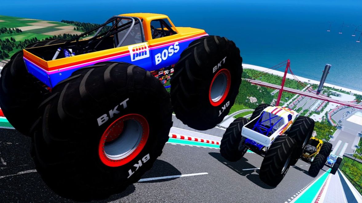 МУЛЬТИКИ ПРО МАШИНКИ Эпические прыжки и столкновения на скоростном монстр-траке Beamng Drive #81