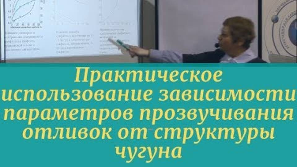 Завершении лекции об УЗК чугунных отливок от Воронковой Любовь Владимировны - к.т.н., специалиста III уровня, ведущего сотрудника НПО ЦНИИТМАШ. В лекции поднимаются вопросы: 0:38 - зависимость скорости ультразвука от вида, содержания и концентрации графитовых включений, фосфора, цементита, глубины отбеливания для прокатных валков 10:35 - оценка изношенности чугунных изложниц от скорости ультразвука 2:20 - использование отношения сигнал/шум для оценки типа чугуна. 6:07 - зависимость частоты затухания ультразвука от рабочей частоты преобразователя для ферритной и перлитоной структуры 12:23 - ультразвуковой контроль механических свойств чугуна