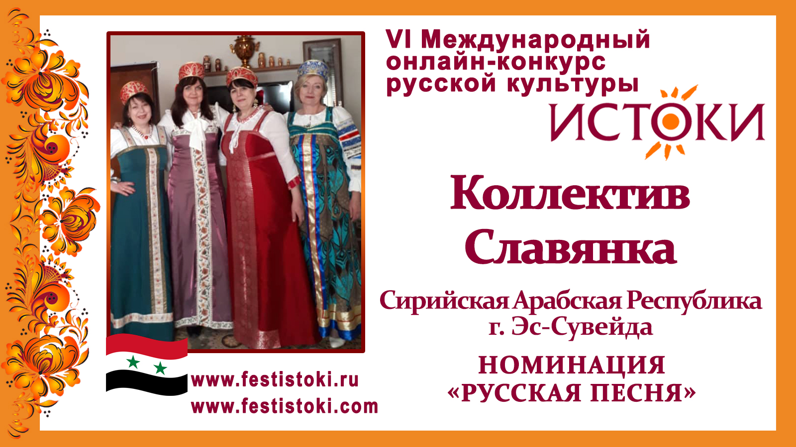 Участник VI Международного онлайн-конкурса русской культуры "Истоки". Номинация "Русская песня". Русская народная песня "Во кузнице". Сайт: www.festistoki.ru / www.festistoki.com E-mail: festistoki@mail.ru