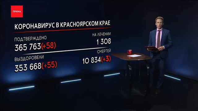 Число госпитализированных ковидных больных значительно выросло — за сутки 59 человек, днём ранее было 18. Количество подтверждённых диагнозов тоже увеличилось. В крае зарегистрировано 58 новых случаев, в том числе 22 в Красноярске. Выписали из больниц 55 жителей региона, скончались 3 человека.