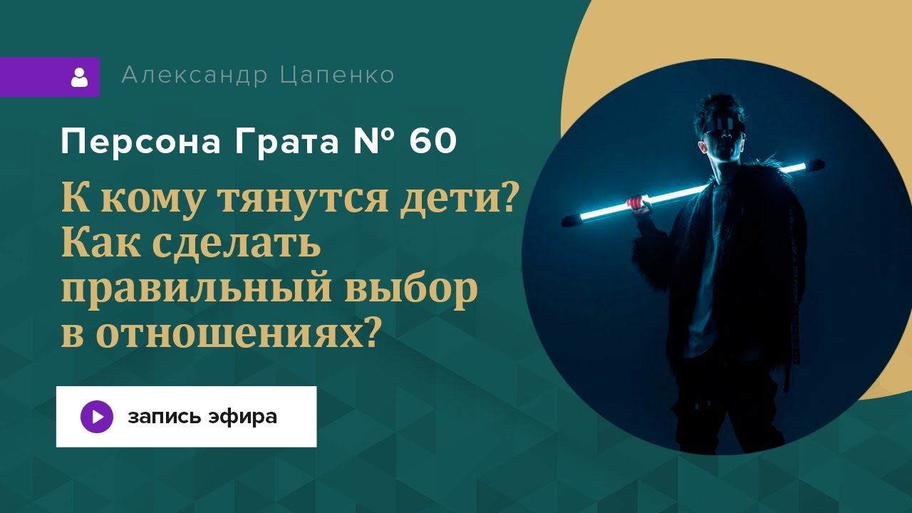 Целых 2 случая в эфире «Персона Грата 60» ⠀ Подняли темы: ⠀ ✔️ Бухай и к тебе потянутся ??? ✔️ К кому тянутся дети? ✔️ Стоит ли забирать ребёнка от первого брака в новую семью и если да, то как? ⠀ ✔️ Как сделать правильный выбор в отношениях? ✔️ Как правильно расставлять приоритеты в отношениях? ⠀ ✅ Регистрация на интенсив https://metod.tsapenko.club/newenergy Сайт Центр психологической безопасности Александра Цапенко - http://tsapenko.club/ Онлайн-курсы - http://tsapenko.club/school Запись на консультацию +7 938 108-26-26 Instagram - https://www.instagram.com/alex.tsapenko/ Facebook - https://www.facebook.com/people/Александр-Цапенко/100004765682566 Вконтакте - https://vk.com/a_tsapenko Telegram - https://teleg.run/tsapenko_metod YouTube - https://www.youtube.com/c/AlexanderTsapenko #Цапенко #МетодЦапенко #Психолог