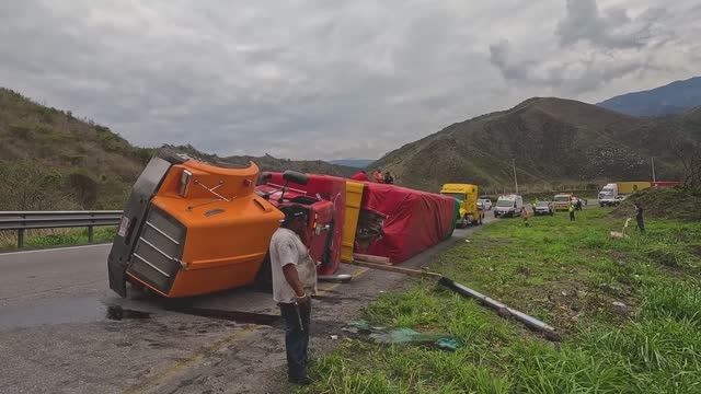 Груженая фура перевернулась на перевале. Пытаемся поставить на колеса.