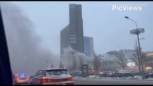 Кадры сильного пожара в Москве на Новом Арбате. Горит ресторан. Сегодня 23 ноября 2023