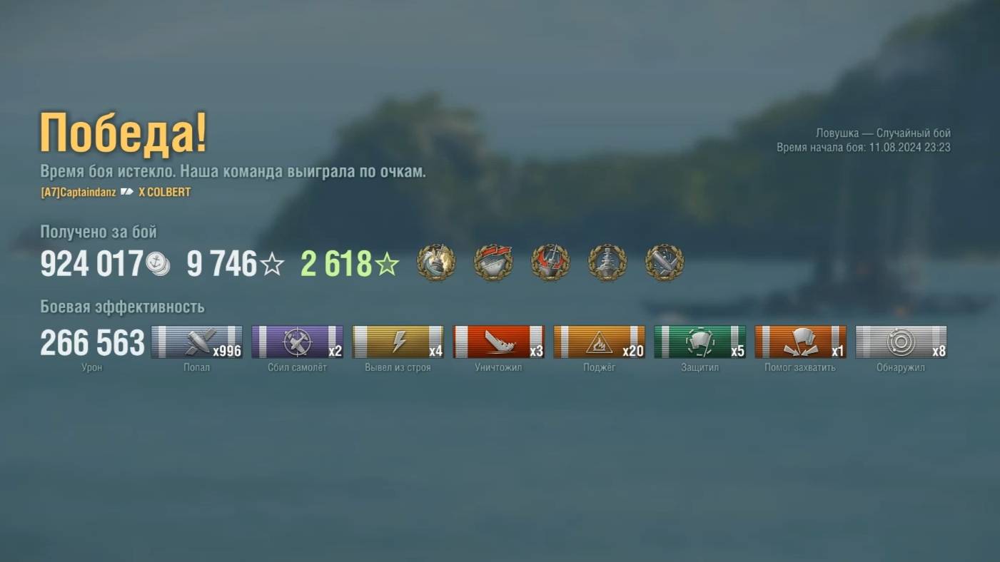 Крейсер X Colbert : +266к урона на карте Ловушка - World of Warships