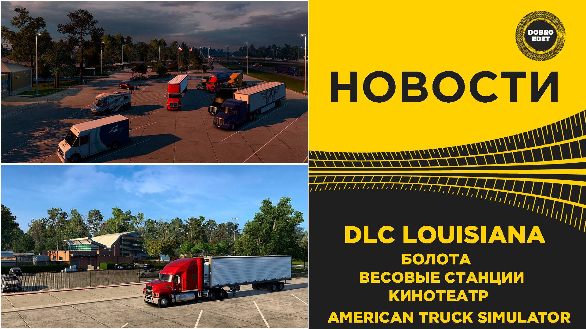 ✅ НОВОСТИ БОЛОТА ВЕСОВЫЕ СТАНЦИИ И КИНОТЕАТР В DLC LOUISIANA ATS ✅Подписаться на мой канал● https://goo.gl/pFdnLk ====================================================== SCS Software продолжает радовать нас свежими новостями! В новом дополнении Louisiana DLC для American Truck Simulator особое внимание уделено деталям: дорожной инфраструктуре, зонам отдыха, информационным центрам и весовым станциям. В этом видео я расскажу, что нас ждет в штате Луизиана, какие особенности будут ждать водителей на трассах I-10, I-12 и I-20, и почему это обновление выглядит по-настоящему атмосферным. Добавьте Louisiana DLC в список желаемого в Steam: https://store.steampowered.com/app/2342440/American_Truck_Simulator__Louisiana/ ✅ИНФА https://blog.scssoft.com/ ✅По вопросам РЕКЛАМЫ - https://vk.com/topic-151331808_35890784 Это Видео - https://youtu.be/peS2iy5e5qk ●✅Группа ВК -https://goo.gl/8TZaGy (МОДЫ ETS2,FS17) ●✅Я в ВК -https://vk.com/dobrovolskiy36 ●✅Наш дискорд https://discord.com/invite/8wZnqTUY49 ●✅Телеграм https://t.me/dobroYT ●✅RUTUBE https://rutube.ru/channel/22815033/ ●✅ДЗЕН https://dzen.ru/dobroedetofficial #EuroTruckSimulator2 #AmericanTruckSimulator #ets2 #DrivingAcademy #TruckSimulator #SCSSoftware #ats #TruckDriving #TruckGame #SimulationGames #TruckDriver #BigRig #18Wheeler #HardParking #EuroTruckSimulator2 #Mods #TruckPhysics #RealTruckDriving #VirtualTrucker #ConvoyMode #TruckGameplay #dobroedet