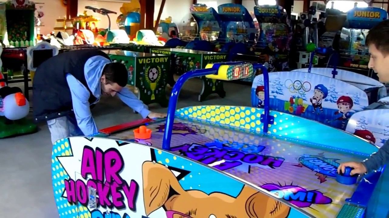 Аэрохоккей - увлекательная и динамичная игра! Задача игроков при помощи биты загнать шайбу в ворота соперника, кто забьет больше голов, тот объявляется победителем. Игра начинается после запуска жетона в жетоноприёмник (для домашнего использования аэрохоккея возможно подключить кнопку для запуска). Мы являемся производителями этого аппарата и предоставляем гарантию качества 1 год и послегарантийный сервис. Количество игроков: 2; Игровое поле изготовлено из высокопрочного поликарбоната, по своим прочностным характеристикам, не уступающего полю из нержавеющей стали; Поле не боится влаги и легко чистится; Устойчивый и прочный корпус; Электронное табло, музыкальное и звуковое сопровождение на русском языке делают игру еще более увлекательной; Мощный компрессор создают "воздушную" основу для игры; Светодиодная многоцветная подсветка, регулируемая с помощью пульта ДУ; Неоновая подсветка снизу придаст особую атмосферу любому залу; Жетоноприемный механизм, работающий на основе эталонного жетона, позволит использовать жетоны, уже имеющиеся у владельца; Дополнительный опции: - изготовление аэрохоккея с Вашим логотипом (либо использования Вашего дизайна полностью) - установка билетного механизма (можно установить один тикетник для выдачи определенного количества билетов; можно установить два тикетника для выдачи билетов согласно результатам игры); - установка купюроприемника или монеприемника; - установка GSM модуля (для удаленного контроля работы). - возможно перепрограммирование игры от 1 до 99-и голов, либо от 1-ой до 99-и минут (перепрограммировать покупатель может сам, руководствуясь инструкцией). В комплект входит: 2 биты, 4 шайбы.