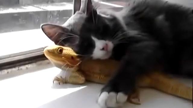 Кот и ящерица Прикол!