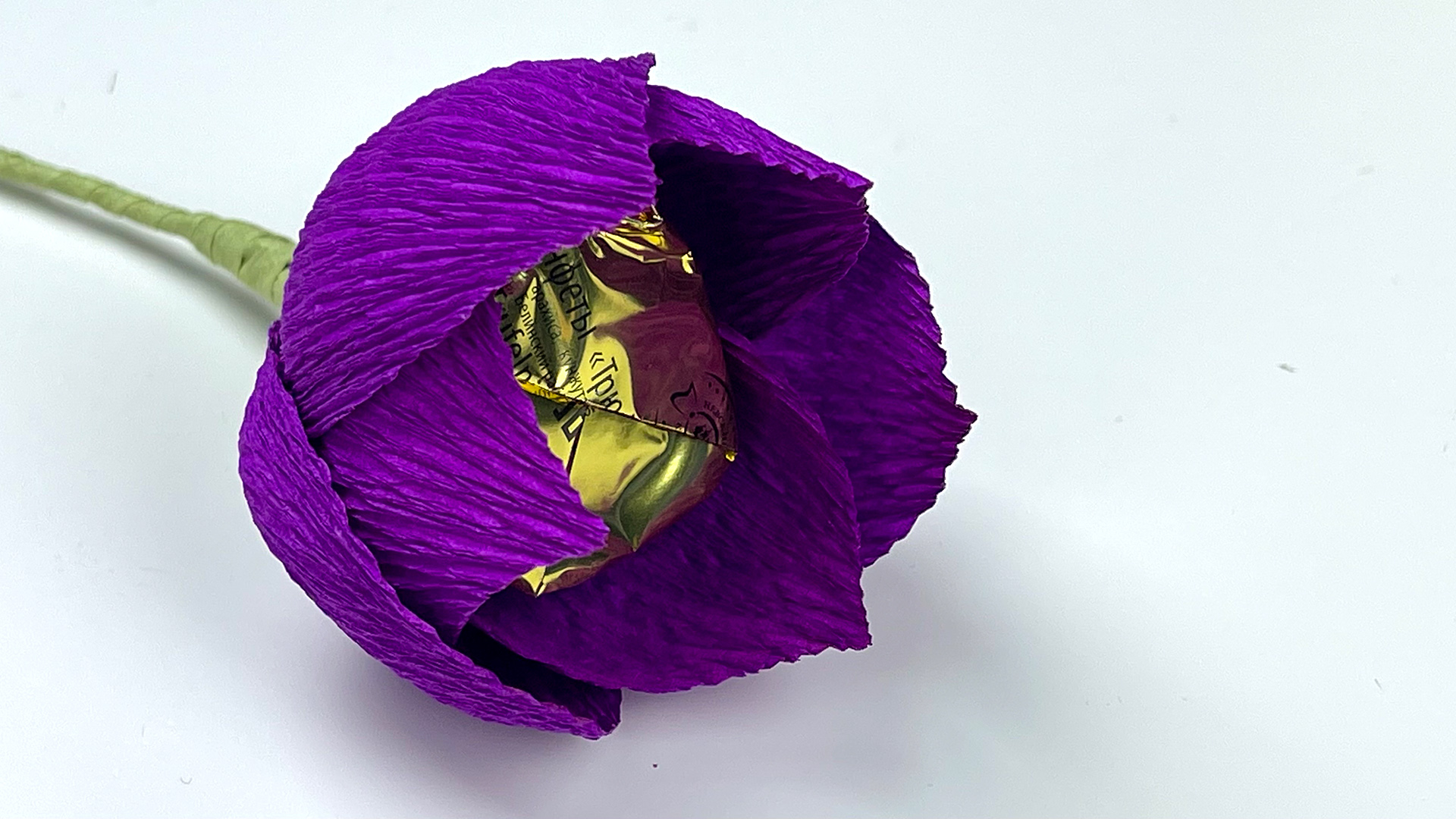 Фиолетовые цветы из креп бумаги и конфет для сладкой композиции. Свитдизайн. DIY Buket7ruTV
