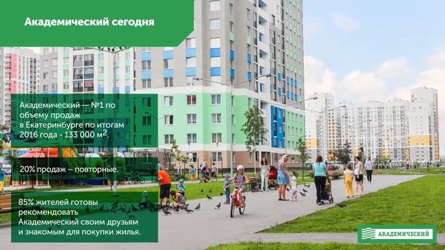 Академический – один из крупнейших строительных проектов в Европе, первый масштабный проект комплексного освоения территории на Урале, один из самых перспективных районов Екатеринбурга. Сегодня в Академическом проживает 45 тыс. человек. Девелопер АО «РСГ-Академическое» (ГК «КОРТРОС»).