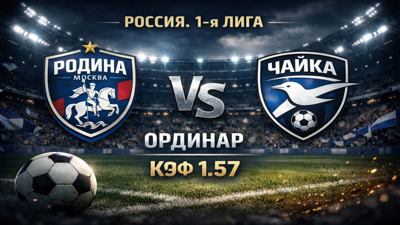 РОДИНА МОСКВА - ЧАЙКА / ПРОГНОЗ С КОЭФФИЦИЕНТОМ 1.57 / РОССИЯ / ФНЛ / 1-Я ЛИГА