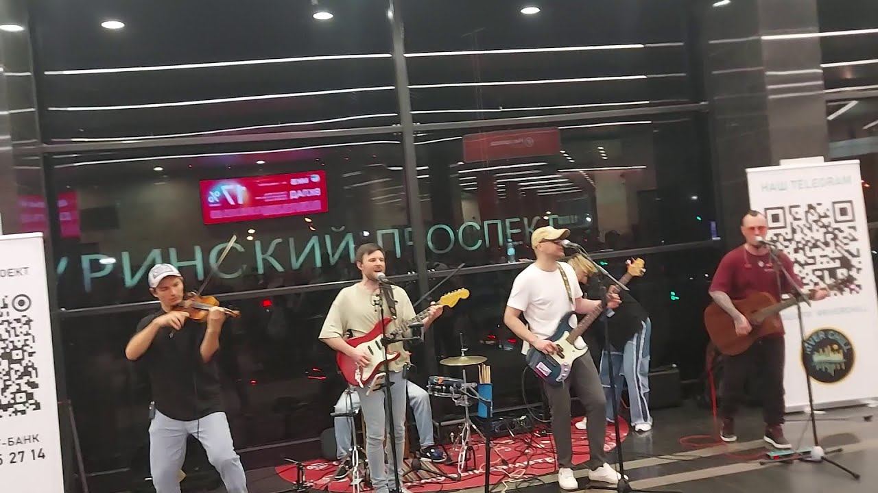 Драйвовое выступление музыкальной группы из пяти участников состоялось в переходе между одноимёнными станциями "Мичуринский проспект" БКЛ и Солнцевской линии Московского Метрополитена. Ребята живенько сыграли композицию "Районы-кварталы". Это была финальная песня концерта в рамках проекта "Музыка в метро". #районыкварталы #концерт #метро