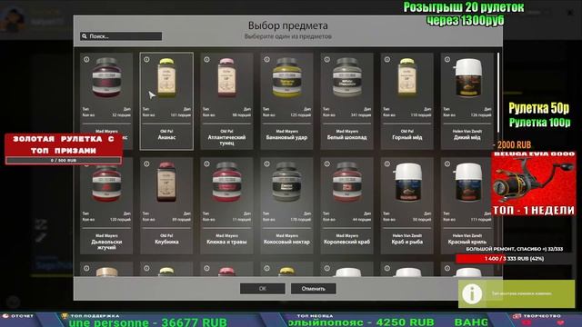 Поддержка донатом https://new.donatepay.ru/@1032463 Альтернативный донат https://www.donationalerts.com/r/kalyamba11 5536913964533059 карта Тинькоф Если стрим лагает,смотри стрим на трово https://trovo.live/s/Kalyamba_na_Ribalke Мой ВК - https://vk.com/kalyantv НИК в игре kalyan11 НАШ ДИСКОРД СЕРВЕР https://discord.gg/3ZeEDGs5h6 Заказ водоема на 1 час - 500р ( весь стрим 2500р ) Модерка на канале 1300р ( каждая следующая на 100р больше) ✅Призы в рулетке "ЗОЛОТАЯ" 500р ✔ ЗОЛОТО ✔ ПРЕМ ✔ КАТУШКИ РАПТОР 40, ВЕНГИ, ТАЙГА, СИЛЬВЕР 80, И другие ✔ ПАЛКИ ПИЛКЕРНАЯ, ДОНКА МОРСКИЕ, ✔ РОД ПОД, СТУЛЬЯ ✅Призы в рулетке СТАНДАРТ : 100р ✔ катушкИ РАПТОР 40, ВЕНГИ, ТАЙГА, СИЛЬВЕР 80, И другие ✔ катушки 60 для медного ( ЭВИИ, НАТОРЫ, ГОЛДА, и тд) ✔ ПИЛКЕРНОЕ УДИЛИЩЕ КОРОЛЕВА ОКЕАНА ✔ Морское Донное удилище ✔ прем ( 3, 7, 30 дней) ✔ золото ( 1, 3, 5, 10, 20 ,50) ✔ билет на море ( 1, 3, 5 дней) ✔ голд наживка и др. ✅Призы в рулетке "СТАРТОВАЯ" 50р ✔ катушка Венга ✔ катушка "silver80" ✔ катушка "БЕЛЫЙ КАЛИБР" ✔ катушка "Черный калибр" ✔ катушка "Протон" ✔ катушка "Нарга 6000" ✔ Набор Фидерист и спинингист ✔ Карповик Фортуна ✔ фидерные удилища ✔ прем, золото, алкашка, наживки и тд P.s Рулетка это не казино, а награда за поддержку стримера. Вечный ТОП ПОДДЕРЖКИ (10.06.2025) 1. Леха сварной 214 572 2. Dimon_pokemonchik 127 034 3. Skreb79 103 061 4. Interceptor 96 230 5. FishRus86 82 500