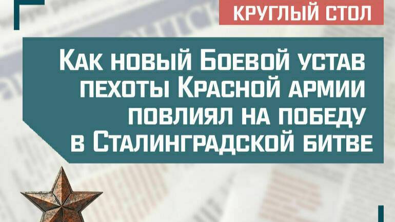 Круглый стол: «Как новый Боевой устав пехоты Красной армии повлиял на победу в Сталинградской битве». В октябре 1942 года Ставка Верховного главнокомандующего выпустила директиву «О мероприятиях по обороне города Сталинграда». В этом документе впервые появились слова, что надо превратить «каждый дом, каждую улицу и каждый квартал в крепость». Для обороны населенных пунктов и для борьбы с танками в Сталинградском районе решено было использовать зенитную артиллерию, создавать противопожарные команды, а также организовать работу ПВО. В ноябре 1942 года был принят приказ Народного комиссариата обороны № 347 о новом Боевом уставе пехоты Красной армии, который отменил деление боевого порядка на ударную и сковывающую группы, но требовал сосредоточения основных сил на направлении главного удара. Вопросы для обсуждения: Как директива Ставки ВГК помогла командованию 62-й армии? С помощью чего осуществлялась связь между огневыми точками? Как строились оборонительные сооружения? Кто контролировал работу зенитной артиллерии и систем ПВО во время Сталинградской битвы? Как новый Боевой устав пехоты Красной армии повлиял на успехи в сражениях? Почему именно Сталинградская битва стала переломным моментом в ходе Великой Отечественной войны? К участию приглашены: кандидат исторических наук, руководитель проектов ЭИСИ, доцент кафедры сравнительной политологии МГИМО Владимир Леонидович Шаповалов, генеральный директор Центра политической информации Алексей Алексеевич Мухин, кандидат исторических наук, доцент, профессор Академии военных наук Юрий Александрович Никифоров.
