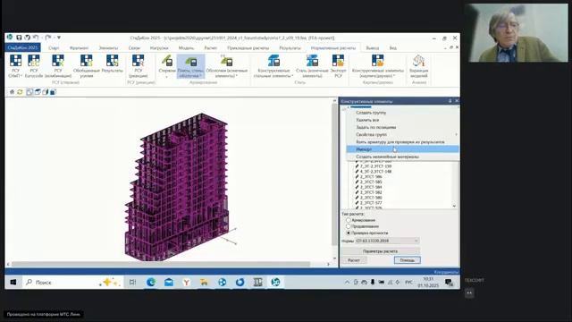 Ответы на вопросы пользователей: - Разрешает ли Стадикон, в КЭ модели, использовать для исследования вариативности результатов простым последовательным назначением разных материалов (по размерам сечения преимущественно) для стержня(ей), входящих в сваю? Или для этого нужно переназначать сваю полностью c нужным материалом? - Ссылка на вебинар, с расчетом системы с покрытием из тросов на динамические воздействия; 08 апреля 2021