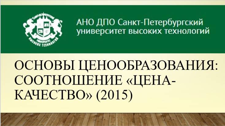 Основы ценообразования: соотношение «цена-качество». Смотреть с 13:20 мин. Первый вебинар Книжной лавки на эту тему состоялся 01.01.2016 г. Ведущая Ирина Дедюхова. Смотреть/читать по теме: Основы ценообразования: соотношение «цена-качество» https://ogurcova-portal.com/osnovyi-tsenoobrazovaniya-sootnoshenie-tsena-kachestvo/ (2015/2019) Источники: Научно-технический портал «Технарь» https://ogurcova-online.com/ "Книжная лавка" https://ogurcova-portal.com/ "Литературное обозрение" https://litobozrenie.com/ Вебинар разработан и проведен в рамках образовательных программ АНО ДПО СПБ УВТ - Санкт-Петербургский университет высоких технологий https://univer.spb.ru/ в соответствии с законодательством об образовательной деятельности в РФ N 273-ФЗ по лицензии №3911 Комитета по образованию Правительства СПб https://univer.spb.ru/wp-content/uploads/2019/12/license015small-1.jpg