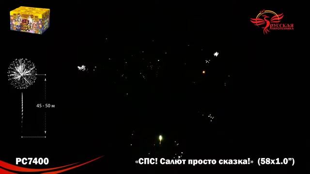 Батарея салютов СПС, Салют Просто Сказка РС7400, 50 залпов, калибром 1 дюйм (25 мм), высотой до 25 м