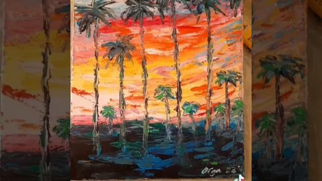 Закат и Пальмы. ??? #shorts #art #painting #video #shortvideo #love #sunset #palms