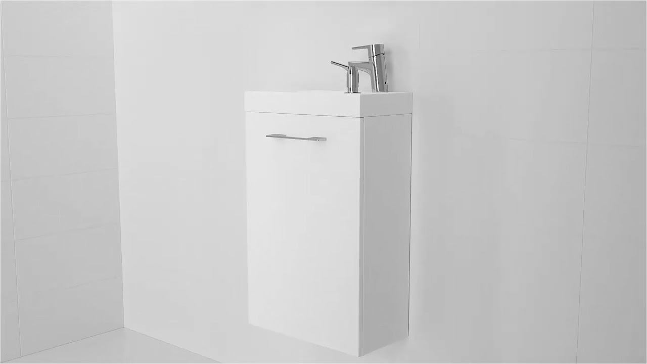 Комплект 5в1: тумба LARA 40, раковина MODUO 40, смеситель CARI, сифон и дозатор