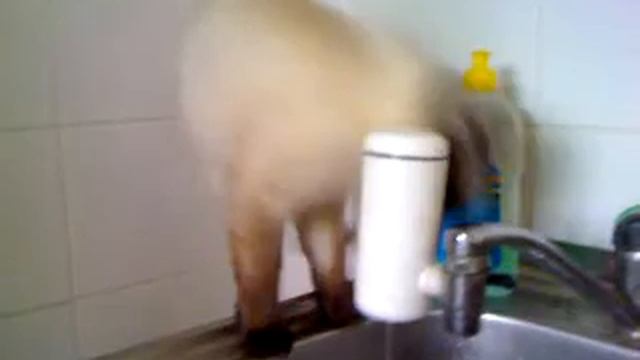 Кіт п"є воду з фільтра.