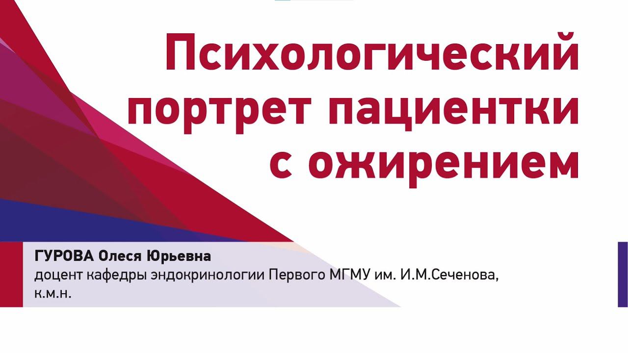26.11.2020 Школа московского эндокринолога Научно-практическая конференция «Ожирение и женское здоровье: передовые технологии в управлении весом» Полноценная психологическая помощь при ожирении пока остается недоступной в России. Поэтому на клинициста часто ложится дополнительная нагрузка – быть для пациента не только врачом, но и оказывать ему психологическую поддержку, конеч-но, с целью достижения значимого клинического результата. И в этой связи врачу Для клинициста важно представлять психологический портрет пациента. Как считает доцент кафедры эндокринологии Первого МГМУ им. И.М. Сеченова О.Ю. ГУРОВА, - это первый шаг к правильному восприятию таких людей. Информационно-выставочное агентство «ИнфоМедФарм Диалог»: http://imfd.ru/ https://vk.com/imfd_dialog https://www.instagram.com/infomedfarm...