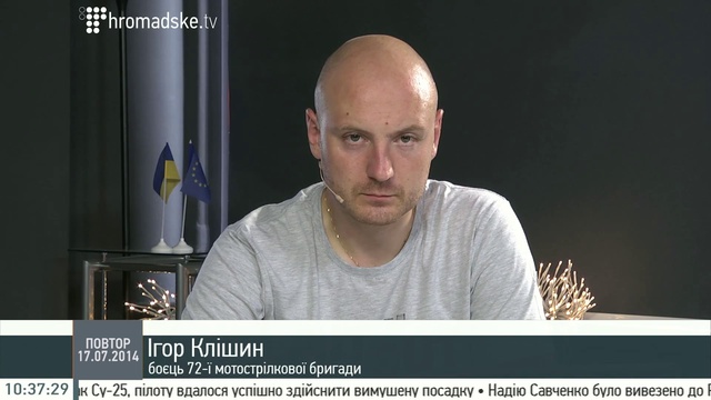 Ігор Клішин, боєць 72-ї мотострілкової бригади телефоном на Громадському 17.07.14 Громадьске ТБ.