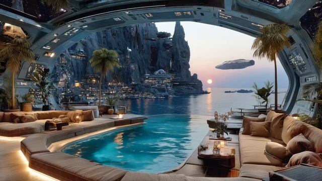 Научно-фантастический пейзаж с атмосферной музыкой для медитации и релаксации.