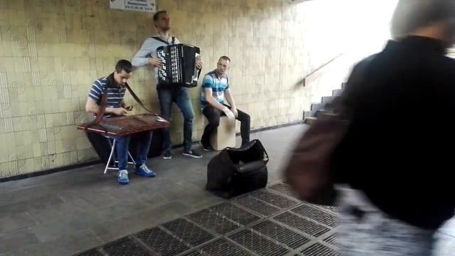 Киев метро Оболонь , 3 друзей играют замечательную музыку. Kiev metro Obolon, 3 friends play wonderful music