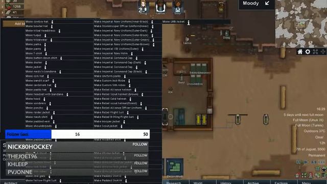 Live Streaming on twitch = https://www.twitch.tv/tekuki_ [INFO] LIve Streaming random games mainly rimworld [Game INFO] RimWorld is a construction and management simulation video game currently being developed by Ludeon Studios. It was initially released as alpha software for Linux, Mac OS X and Microsoft Windows on November 4, 2013. [PLAYLIST] Rimworld A17 - https://www.youtube.com/playlist?list=PL7sPhKyomERoD9bOOJNvrfr_5n2jwANCw [SOCAIL] ➜Twitter-https://twitter.com/Delanvera [Discord] https://discord.gg/H5huzUp ==H.A.T.E.R.S MEAN== H- Having A- Anger T- Towards E- Everyone R- Reaching S- Success Multistreaming with https://restream.io/