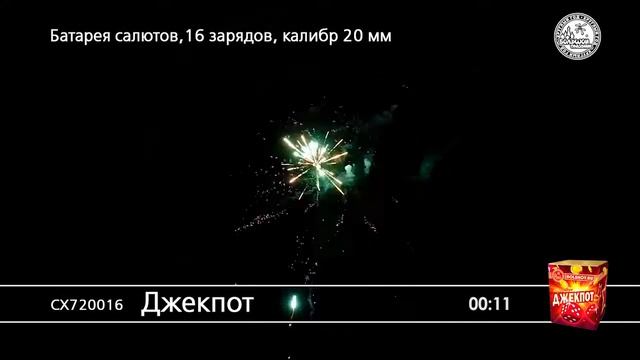 СХ720016 Джекпот Батарея салютов 16 залпов калибром 0,8 дюйма , высотой 20м