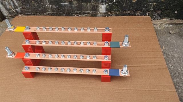 RC19 БШ4-3.25-11 Блок медных шин 3х25 мм 4 полюса по 11 присоединений, ширина 395 мм, 400 А Предназначен для установки в низковольтных комплектных устройствах (НКУ) и служит для распределения переменного трёхфазного тока. Ширина: 395 мм. Материал шин: медь. Номинальный ток: 400 А. Кол-во присоединений: 11 (М5 - 4 шт.; М6 - 5 шт.; М8 - 1 шт.; М12 - 1 шт.). Сечение шины: 3×25 мм. Раздел на сайте: https://anbik.ru/setevye-skafy/rubric-186/